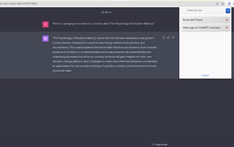 С помощью ChatGPT Bookmark пользователи могут легко организовывать и получать доступ к сохраненным чат-сессиям, что упрощает отслеживание прогресса, извлечение ценной информации и продолжение с места остановки без необходимости искать через несколько разговоров. Это бесплатное расширение является полезным дополнением для лиц, желающих улучшить свой опыт использования ChatGPT путем улучшения управления чатами и доступности.